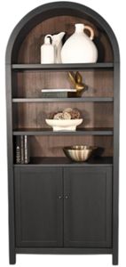 This elegant black display cabinet features arched detailing and glass doors, offering a stylish way to showcase your favorite décor or collectibles. With its bold finish and spacious shelves, it adds both function and modern charm to any living or dining space.Read More