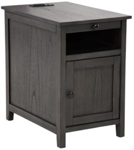 This end table displays accent pieces and stores essentials securely while keeping devices powered up